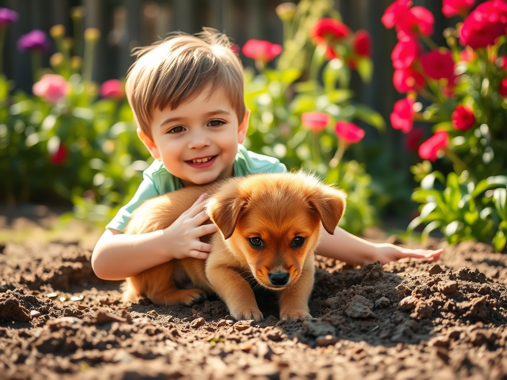 Liam has a small, brown puppy named Max. Max is very playful and curious, and he loves running around in the garden. One day, while Liam was at school, Max managed to squeeze through a hole in the garden fence. When Liam got home and didn’t see Max, he felt worried.