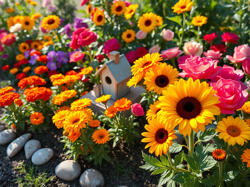 They began by choosing bright and colorful flowers like marigolds, sunflowers, and roses. Jenna learned that each flower needed different amounts of sunlight and water. She carefully planted the seeds and watered them every day. She also added decorations like small stones and even a tiny birdhouse.